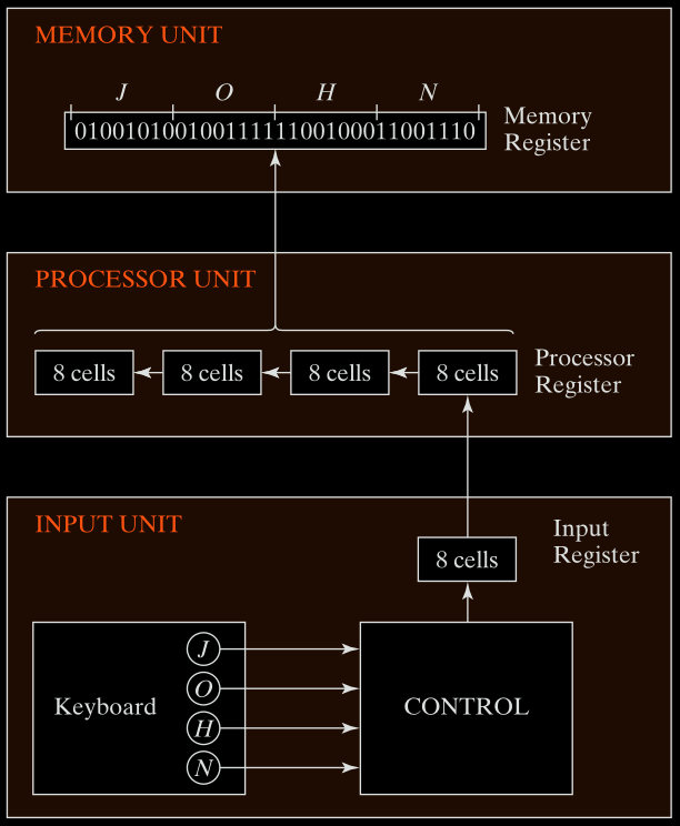 Fig. 1-1 below describes how characters entered from a keyboard are transferred: