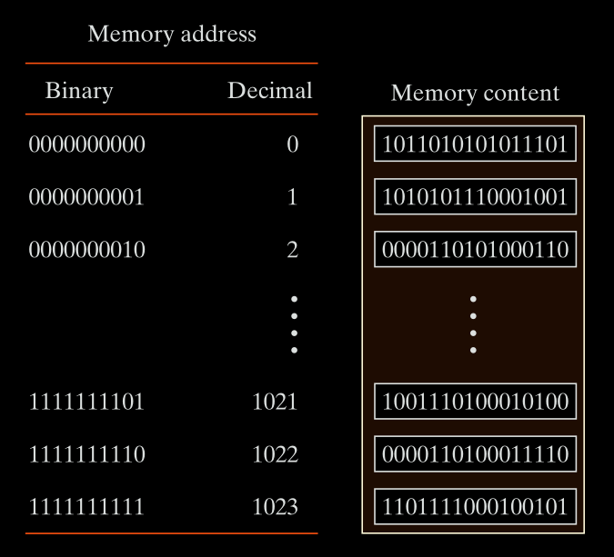 To select a word, you use binary addresses.