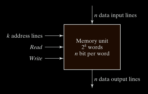 - k address lines: To select which word (out of all available) to read or write.